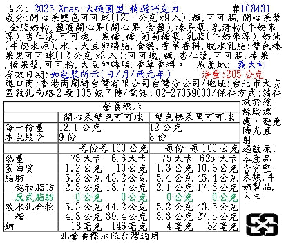 開心果雙色可可球(12.1公克x9入):糖,可可脂,開心果漿,全脂奶粉,鹽漬開心果(開心果,食鹽),榛果漿,乳清粉(牛奶來源),杏仁漿,可可塊, 焦糖[糖,葡萄糖漿,乳脂(牛奶來源),奶油(牛奶來源),水],大豆卵磷脂,食鹽,香草香料,脫水乳脂;雙色榛果黑可可球(12公克x8入):可可塊,糖,杏仁漿,可可脂,榛果,榛果漿,可可粉,大豆卵磷脂,香草香料。 SKU:1620002136