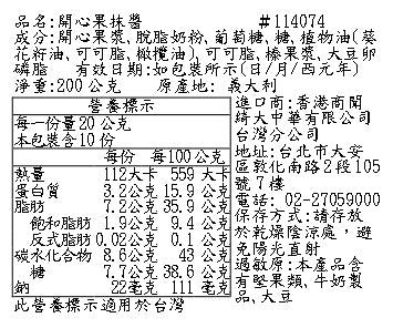 過敏原:本產品含有堅果類、牛奶製品、大豆