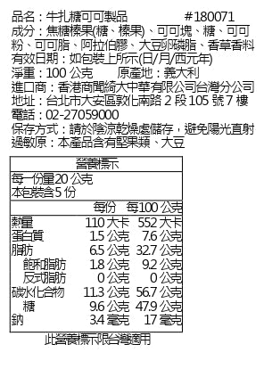 過敏原:本產品含有堅果類、大豆