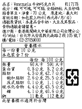 成分:可可塊、糖、可可脂、大豆卵磷脂、香草香料