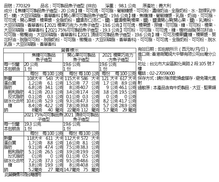 過敏原:本產品含有牛奶製品、大豆、堅果類